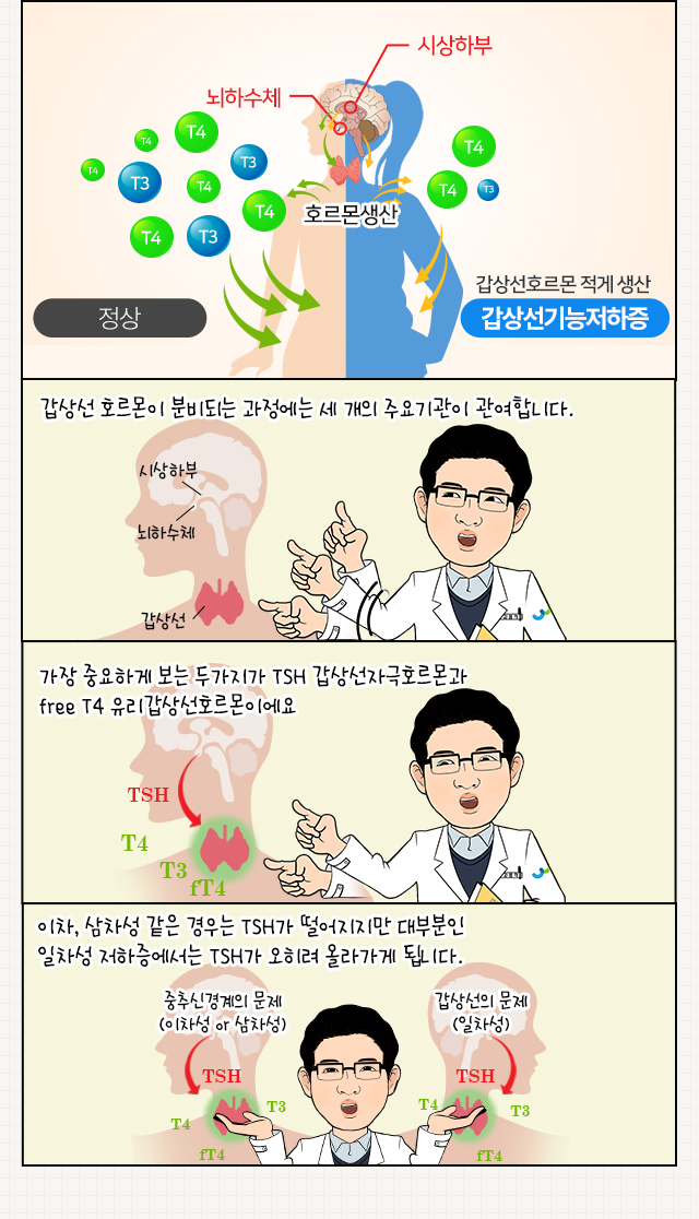 우리 몸에서 필요한 갑상선호르몬(T3과 T4)의 분비가 적어져