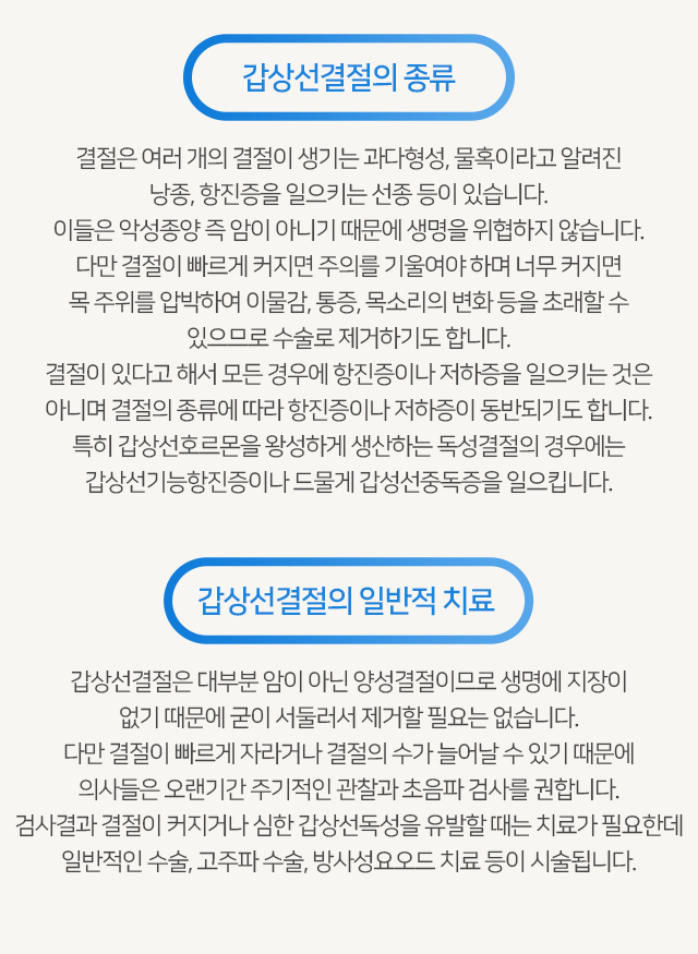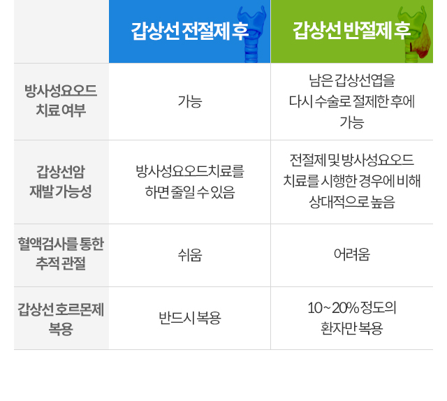 2차적 발암 위험에 갑상선 호르몬제를 평생 복용해야 하는 불편함 등이 뒤따르게 됩니다.
