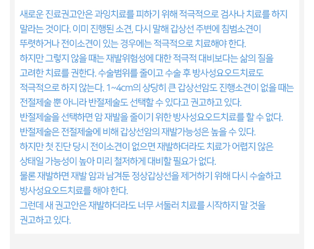 2016년 11월 발표된 ‘대한갑상선학회 갑상선결절 및 암 진료권고안 개정안’에 담겨 있습니다.