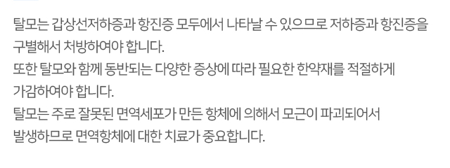 눈썹의 바깥쪽 1/3이 사라지는 증상이 잘 나타납니다. 갑상선기능저하증으로 인한 탈모는 저하증의 증상인 만성피로,