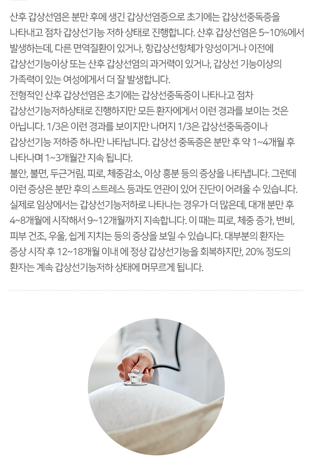 계속해서 우세한 경우에는 산후풍의 증상이 수년 혹은 그 이후까지 계속되는 것입니다. 산후에 갑상선호르몬의 수치가