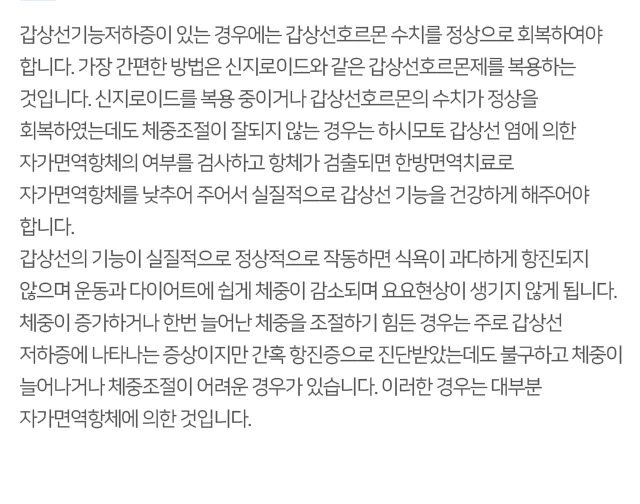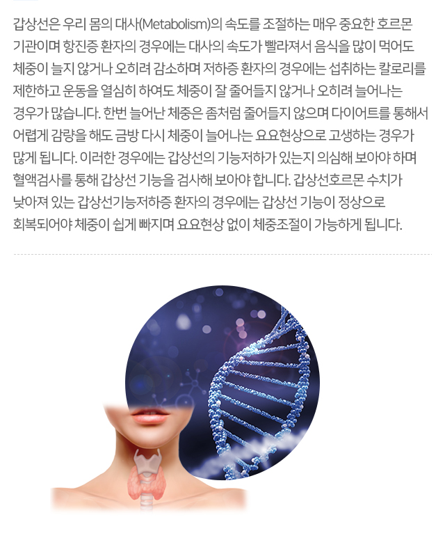 갑상선이 제 기능을 발휘하지 못하며 결과적으로 체중조절이 힘들고