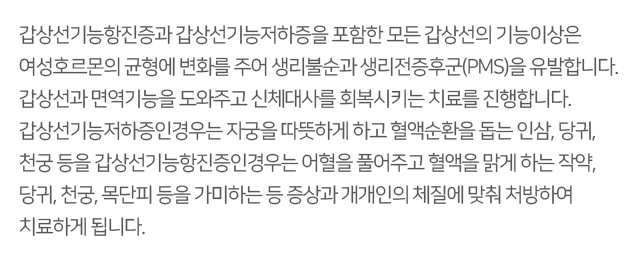 (PMS: Premenstrual syndrome)도 갑상선의 문제로 인해 나타날 수 있습니다.