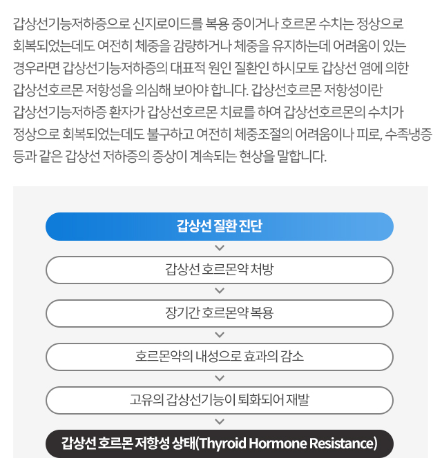 갑상선호르몬 저항성은 주로 자가면역질환인 하시모토 갑상선 염으로