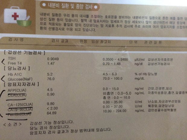 그 빈맥이라는 것이 갑상선기능항진증에 의해 올수도 있다고 하는데. 문득 건강검진했었던게 생각이나서 뒤져봤는데.. 이렇게 결과가 있더라구요..